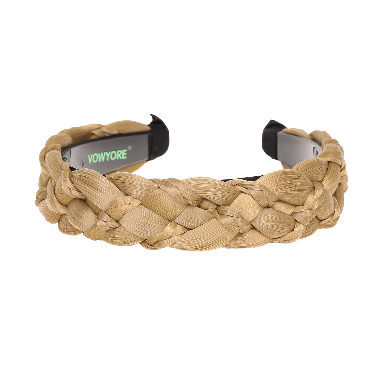 vowyore 6 strands Synthetic Hair Braided Headband Classic Chunky Wide Plaited Braids Wig with Teeth Hair Band Hair Hoop Hair Accessories