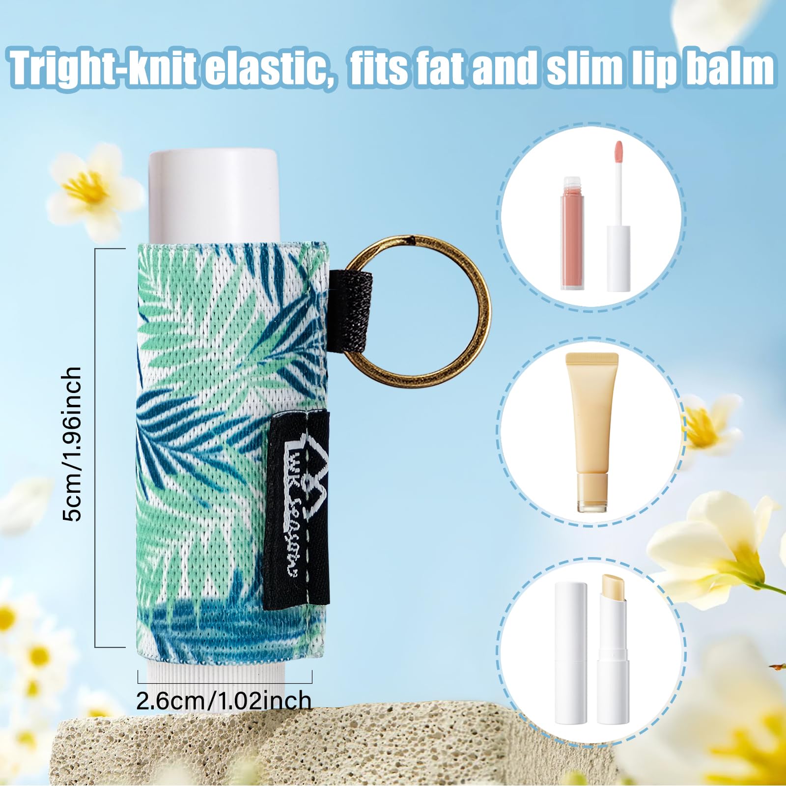 WK IEASON 10PCS Lip Balm Holder Keychain Bulk Chapstick Holder Key chain Lipstick Holder Lip Gloss Sleeve -Tight Elastic Holder Sleeve for Fat and Slim Lip Balms&Gloss and Lip Sticker(10pcs Floral A)