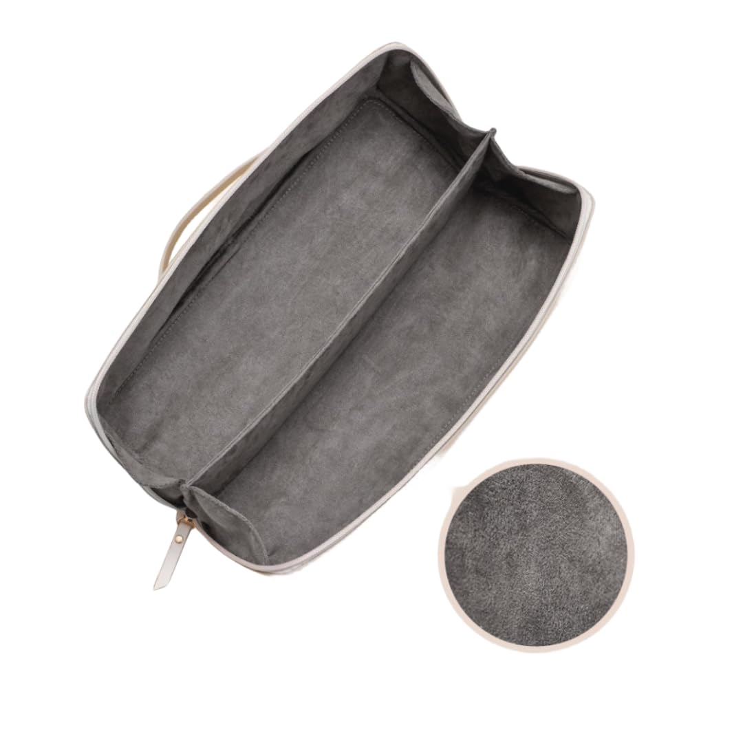 - Durable ,Easy Clean,waterproof: Classic and elegant travel pouch make with high quality memorable leather fabric and polyester lining easy to clean, water-resistant , scratch resistant, no need to worry about rain,Comfortable Portable Handle Design Can Portable carry the travel bag easily, while the Double zipper opening design is reasonable,The hairdressing tools and accessories don't fall out,will bring great convenience to your life,Let you have a relaxing, enjoyable trip.