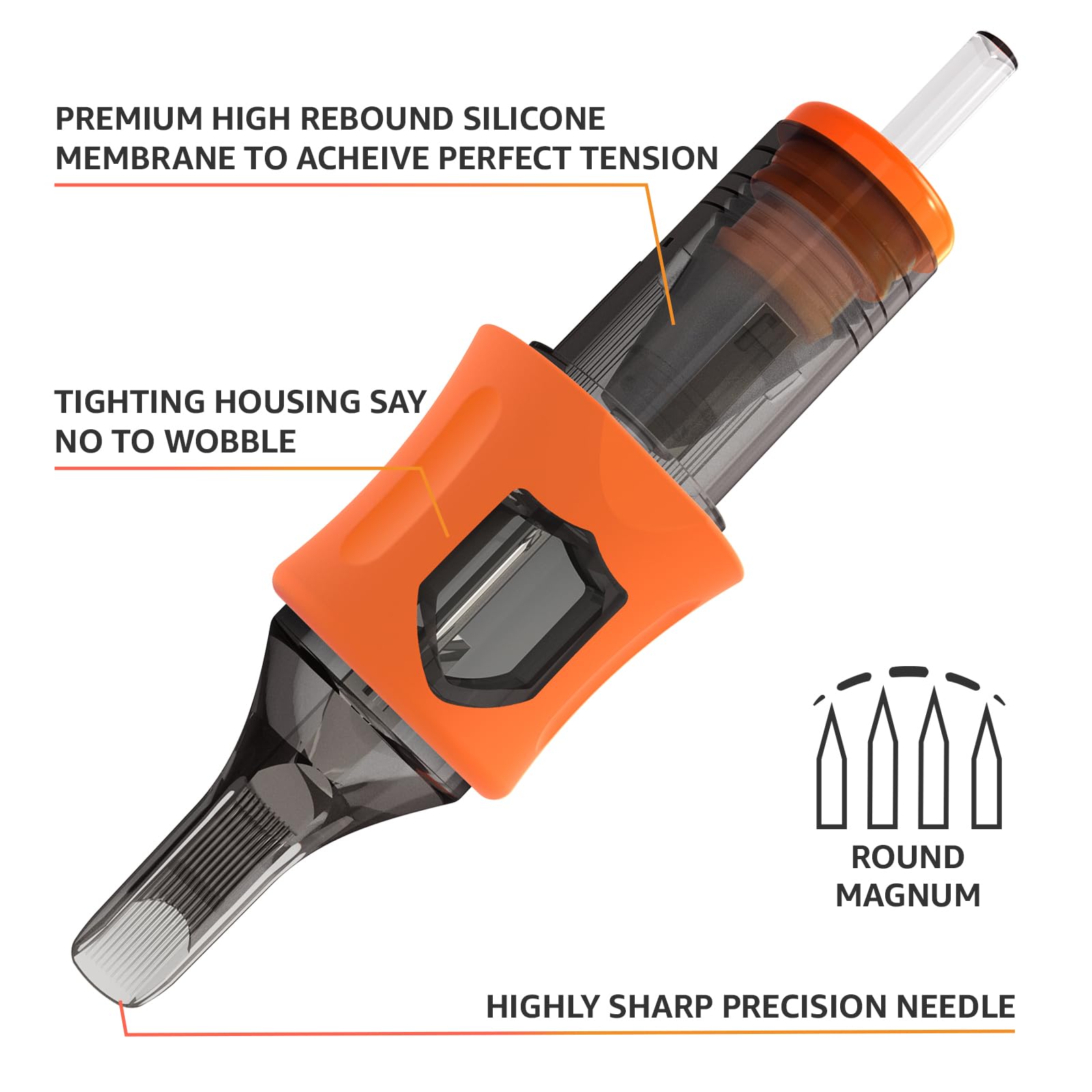 YABA 20Pcs Disposable Magnum Tattoo Cartridges Needles Bugpin for Tattoo Gun,Standard Membrane Tattoo Cartridges Needles for Tattoo Artists (1207CM)