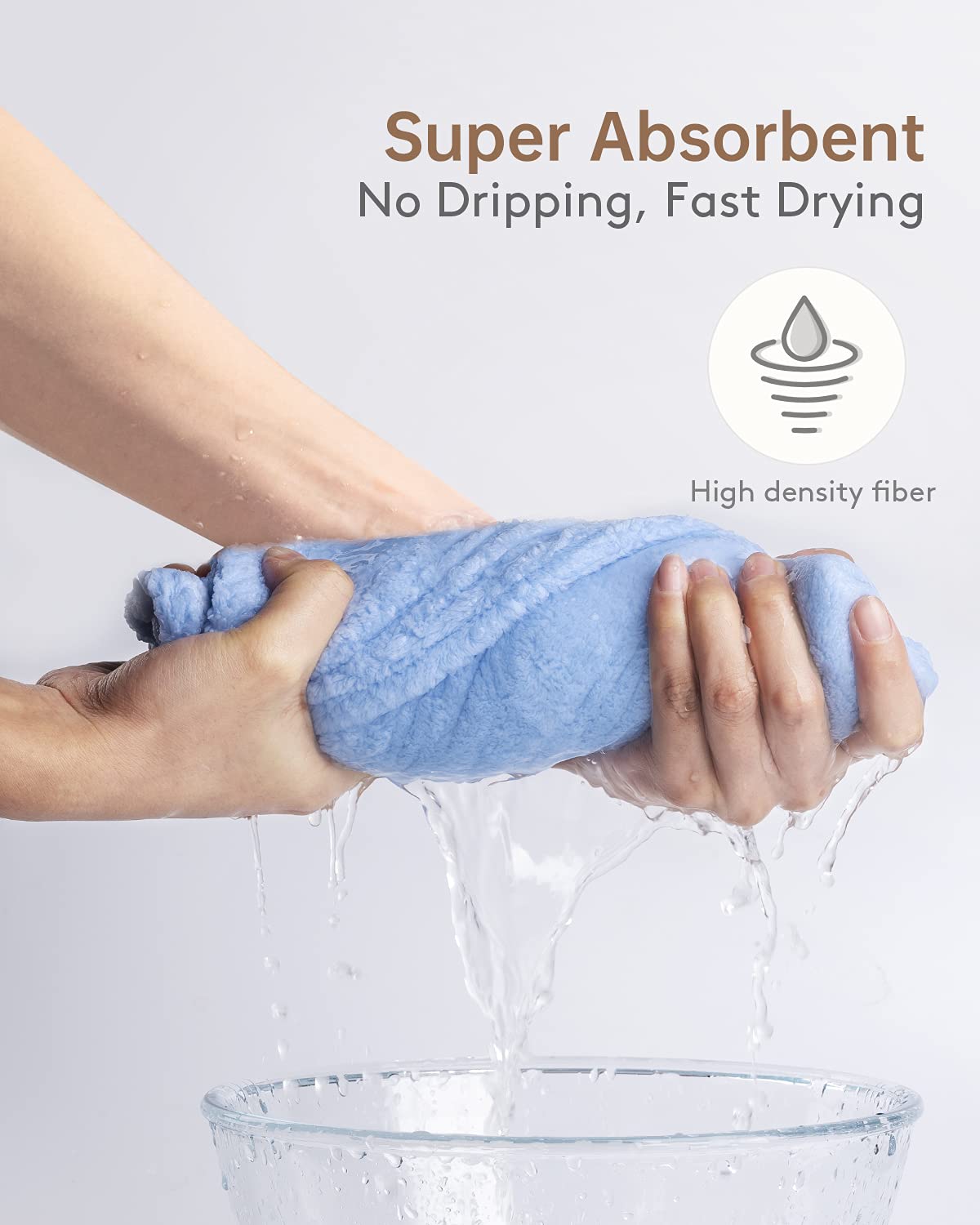 - FAST DRYING AND NO DRIPPING: The microfiber hair towel is made of super absorbent microfiber fabric, machine washable, soft and comfortable, drying your hair more quickly and thoroughly, no dripping during your daily use, mainly saving your time.