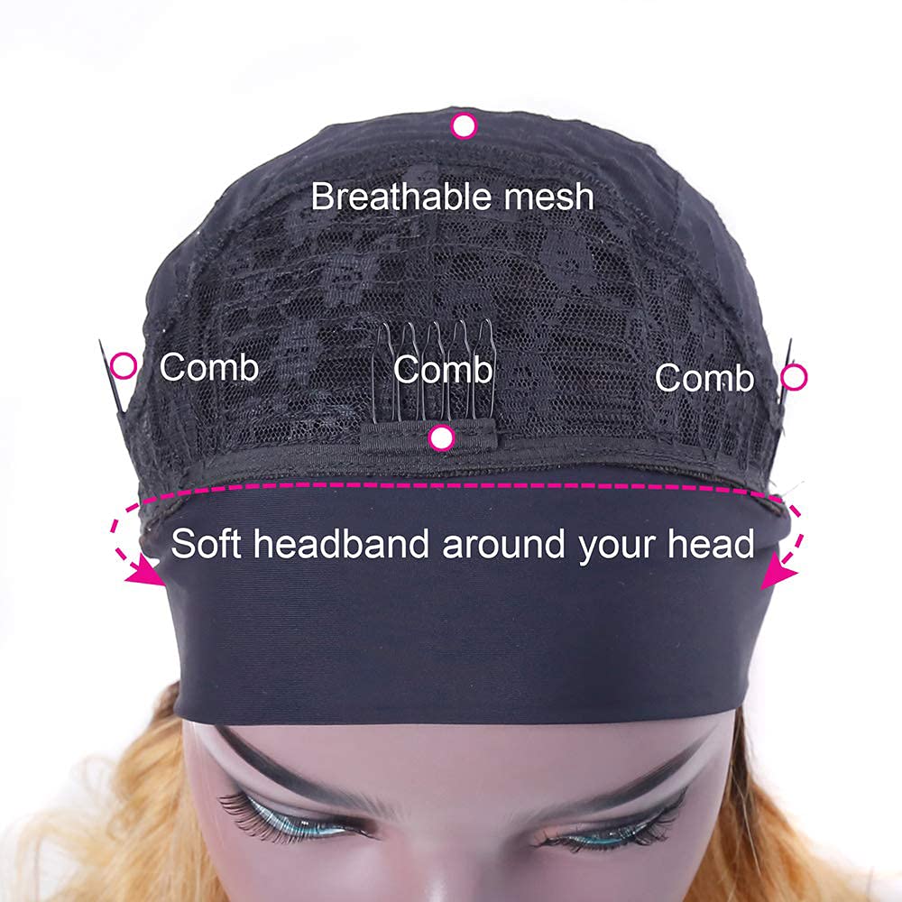 - 【Headband Wig Cap Size】:The Headband Wig Is #1b27,Black To Honey Blonde.14-34 Inch.150 Percent Density.Density, Medium Cap(21.5'-22.5') Available With 4 Combs And Adjustable Strap,The Velcro Snapping Design Makes It Friendly For Big Or Small Head.