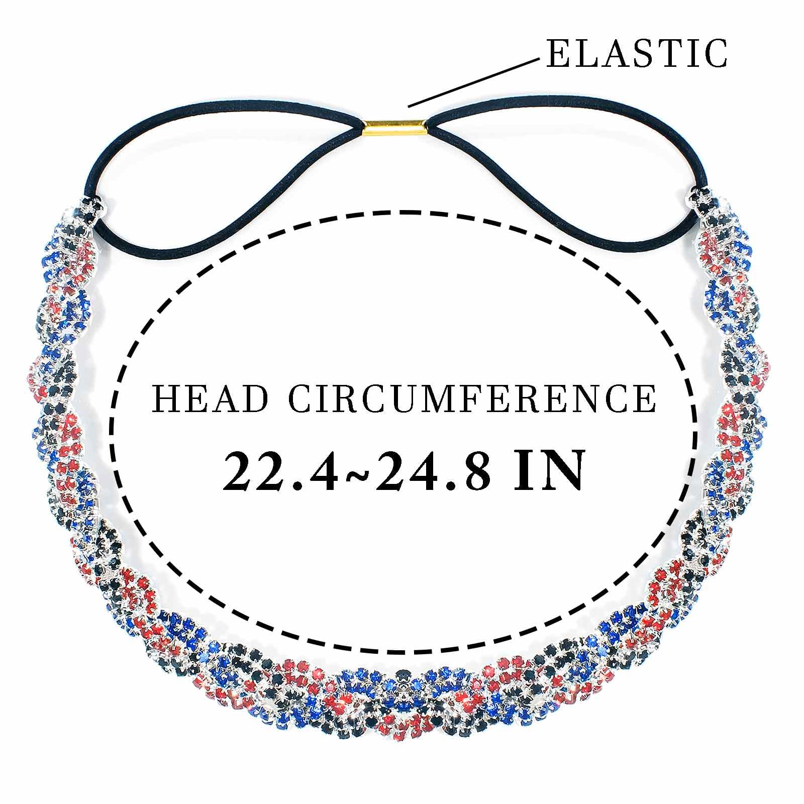 - Rhinestone headband is about 22.4-24.8 in. It's flexible enough and can be stretched, suitable for adult women and girls. Ideal headband for short hair or long hair.