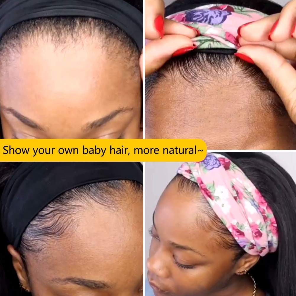 - HUMAN HAIR HEADBAND WIG. Natural color can be dyed to any color you like. 180% density glueless wigs human hair