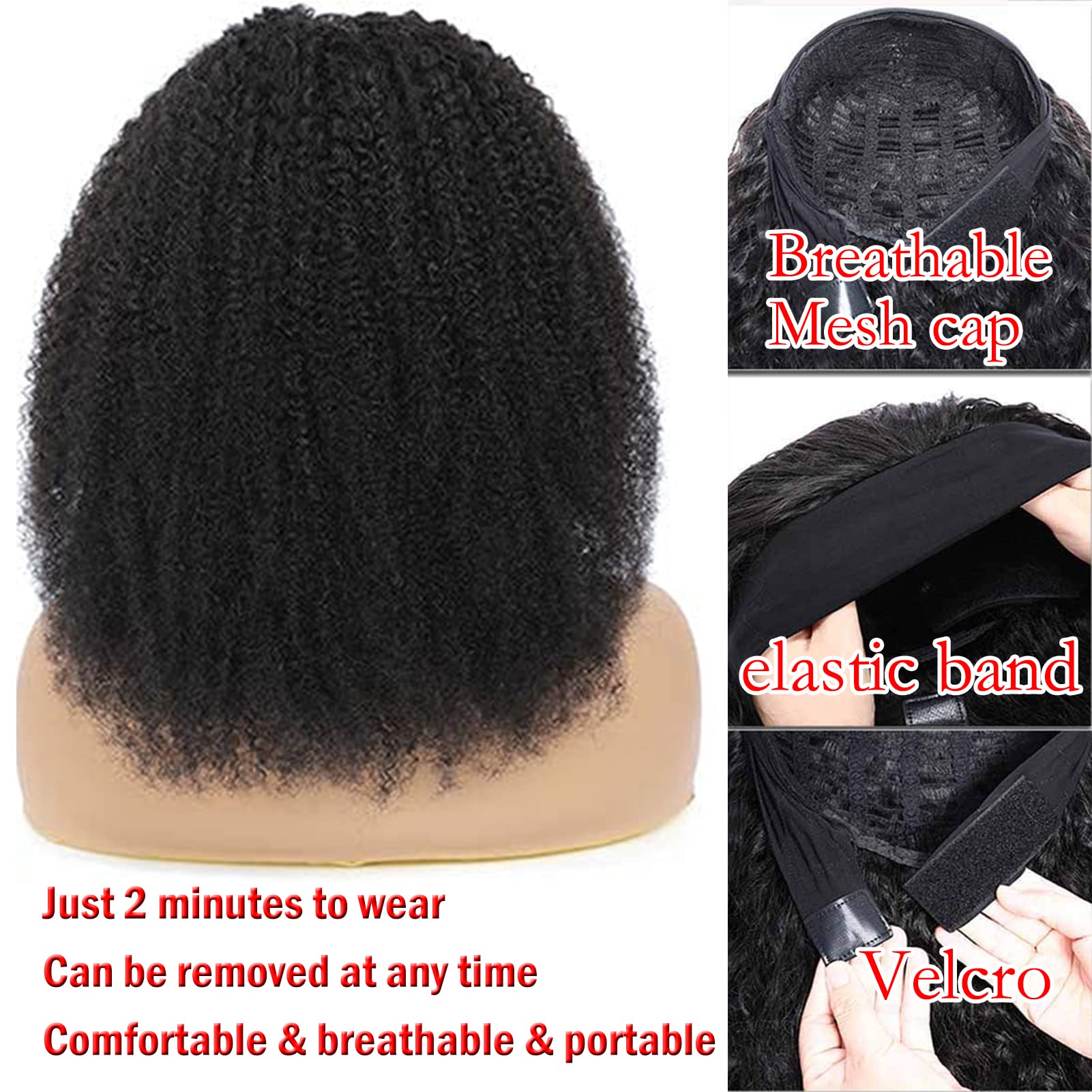 - CURLY HEADBAND WIG HUMAN HAIR. Headband wig real hair cap size: Medium cap (21.5“-22.5”) with 3 combs. Easy to adjust, adjustable straps help you adjust to a better fit and comfort.