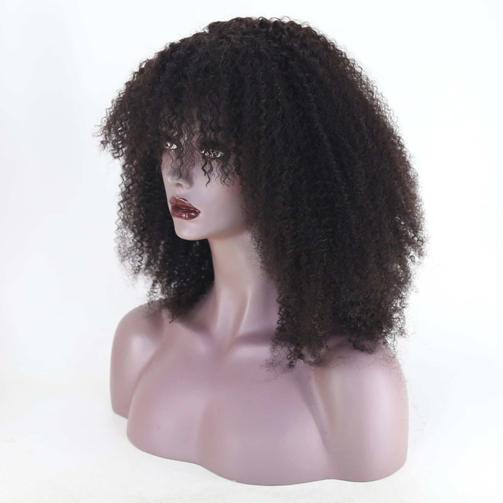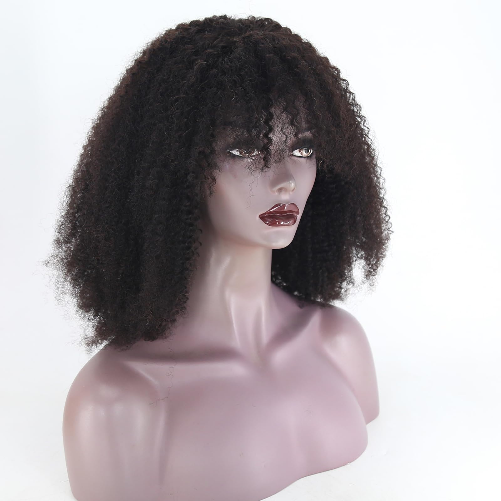 - Afro Kinky Curly Wig with Bangs for Black Women Full Machine Made Natural Hair Wig