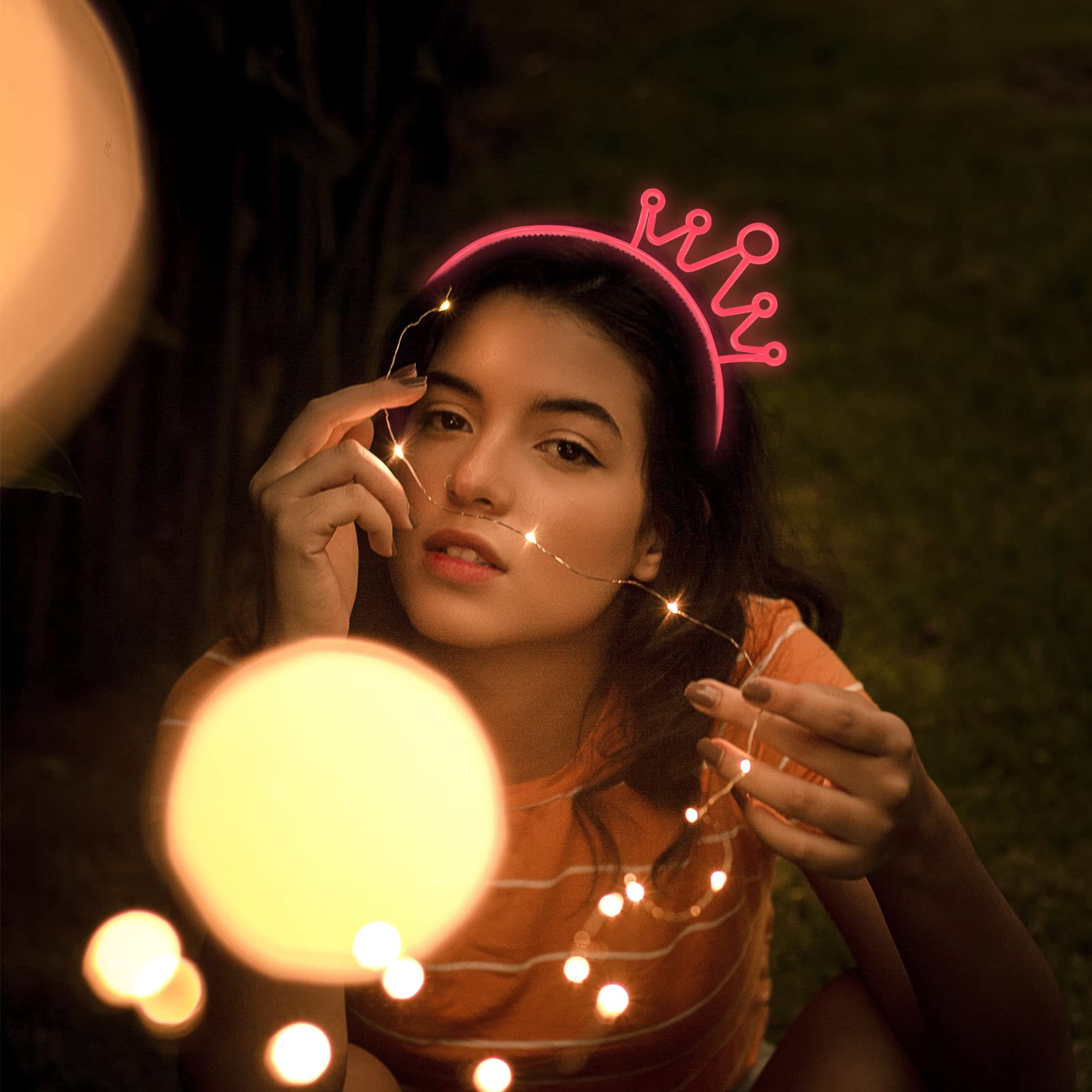 - 【GLOW IN THE DARK】: This headbands can glow in the dark and make you a fairy at night using the cute girl headbands. You and your friends even take very creative photos at night. The simple and generous crown design can make you look more fashionable and cute, perfect for party, Christmas, birthday, etc. To get a better glowing effect, please put the headband in the sunlight or under the light for 3-5 minutes. The longer it is in the sunlight, the brighter it glows.
